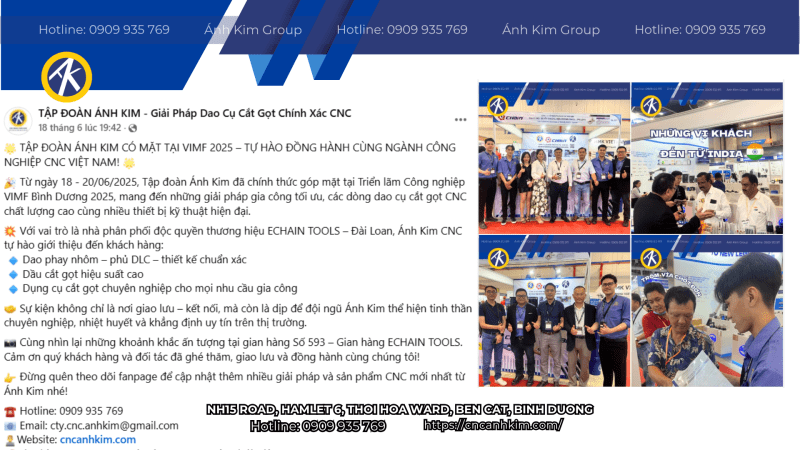 Với vai trò là đại lý phân phối độc quyền thương hiệu ECHAIN TOOLS – Taiwan tại thị trường Việt Nam, Ánh Kim CNC đã mang đến VIMF 2025 một bức tranh hoàn chỉnh về hệ sinh thái dụng cụ và giải pháp gia công CNC toàn diện: