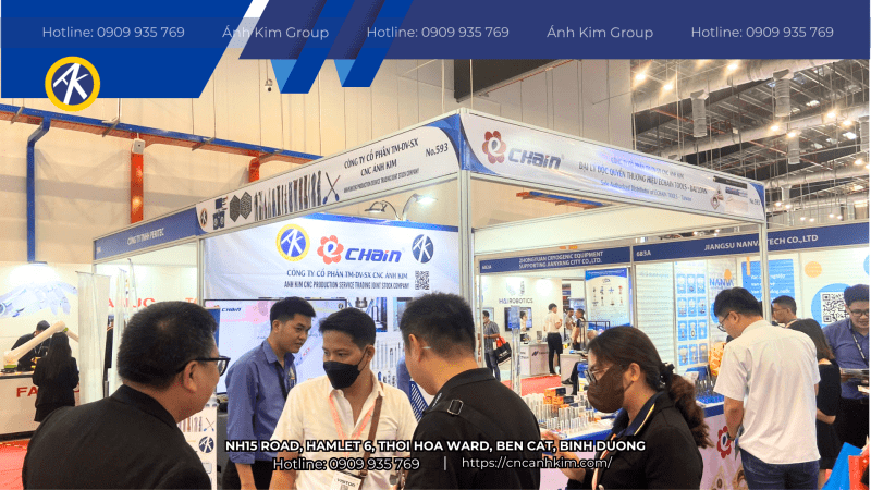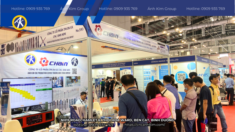 Tại triển lãm, Ánh Kim CNC mang đến gian hàng số 593 – nơi hội tụ những tinh hoa công nghệ, giải pháp tối ưu và những sản phẩm đậm dấu ấn kỹ thuật hiện đại. Với sự đầu tư bài bản về hình ảnh, đội ngũ nhân sự và sản phẩm, gian hàng của chúng tôi nhanh chóng thu hút đông đảo khách tham quan ngay từ những giờ đầu khai mạc.