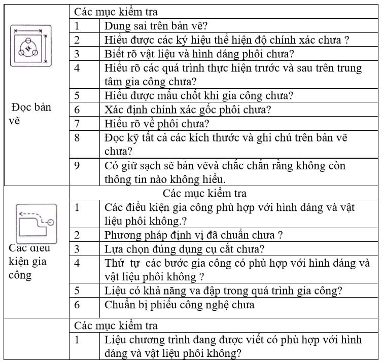 Người lập chương trình phải có kiến thức về gia công ñể viết chương trình trên cơ sở những kiến thức này và nên ñọc kỹ những ñiều sau ñây ñể ñảm bảo các hoạt động chính xác, hiệu quả và an toàn. Người lập chương trình phải: