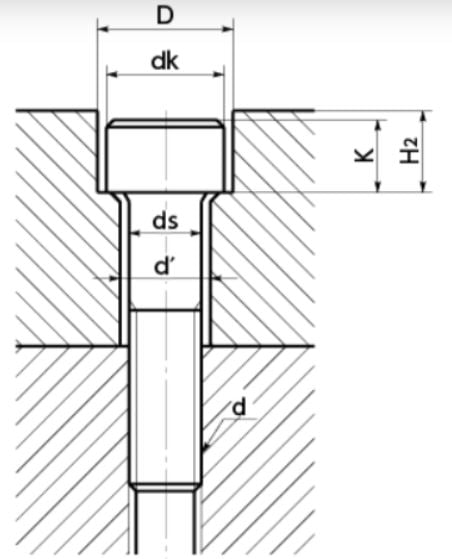 Kích thước lỗ và chiều sâu bậc để bắt bulong lục giác chìm
