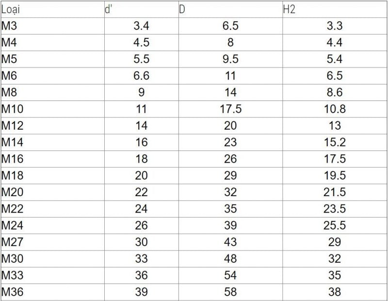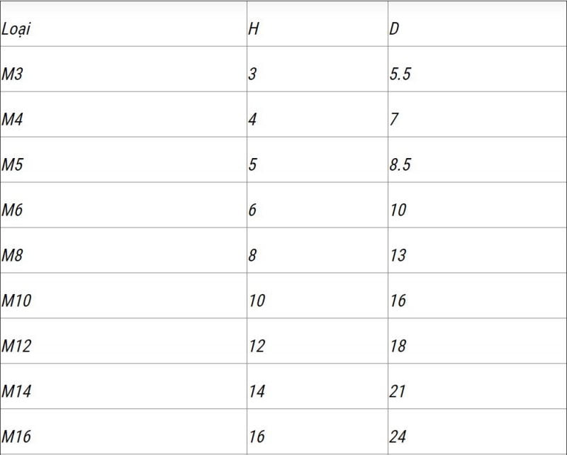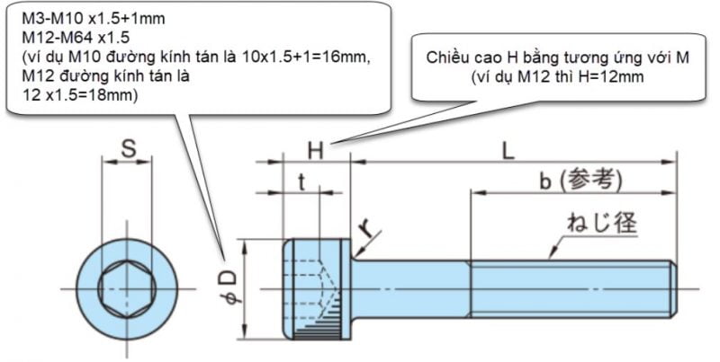 Cách tra cứu và tính toán đường kính và chiều cao tán bulong lục giác chìm