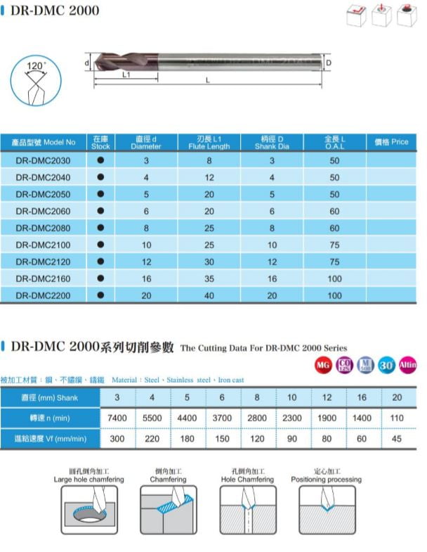Dao phay chích tâm mã DC-DMC2000 là dòng dụng cụ cắt kim loại hiệu suất cao trong nghành gia công phay CNC.