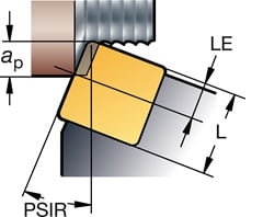 - Dựa trên LE và Ap cần thiết, có thể chọn độ dài cạnh cắt chính xác, L và IC cho Insert