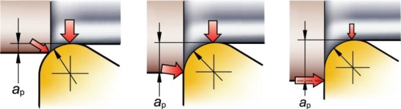 Theo nguyên tắc chung, chọn bán kính mũi RE bằng hoặc nhỏ hơn độ sâu cắt Ap.