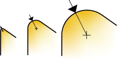 Bán kính góc dao RE, là một yếu tố quan trọng trong hoạt động tiện. Insert có sẵn trong một số kích cỡ của bán kính mũi như 0.2 – 0.4 – 0.8 .. Việc lựa chọn phụ thuộc vào độ sâu cắt D.O.C và bước tiến feed và bề mặt hoàn thiện sau gia công, khả năng bẻ phoi và độ cứng của Insert
