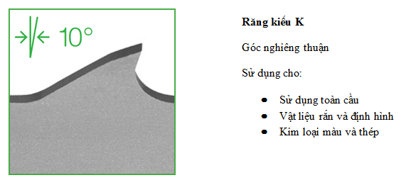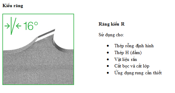 Việc lựa chọn kiểu răng cũng ảnh hưởng không nhỏ đến hiệu suất làm việc lưỡi cưa và thành phẩm. Đưới đây là một số kiểu răng lưỡi cưa, mỗi kiểu răng là ứng với từng loại vật liệu riêng