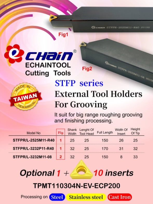 Với sự phát triển không ngừng của ngành cơ khí hiện nay, Echain đã cho ra mắt dòng sản phẩm cán dao tiện ngoài STFP Series với các tính năng nổi bật như sau:
