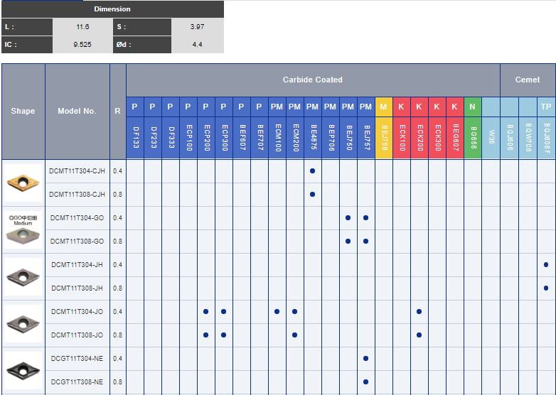 Model: DCMT11T3, DCGT11T3